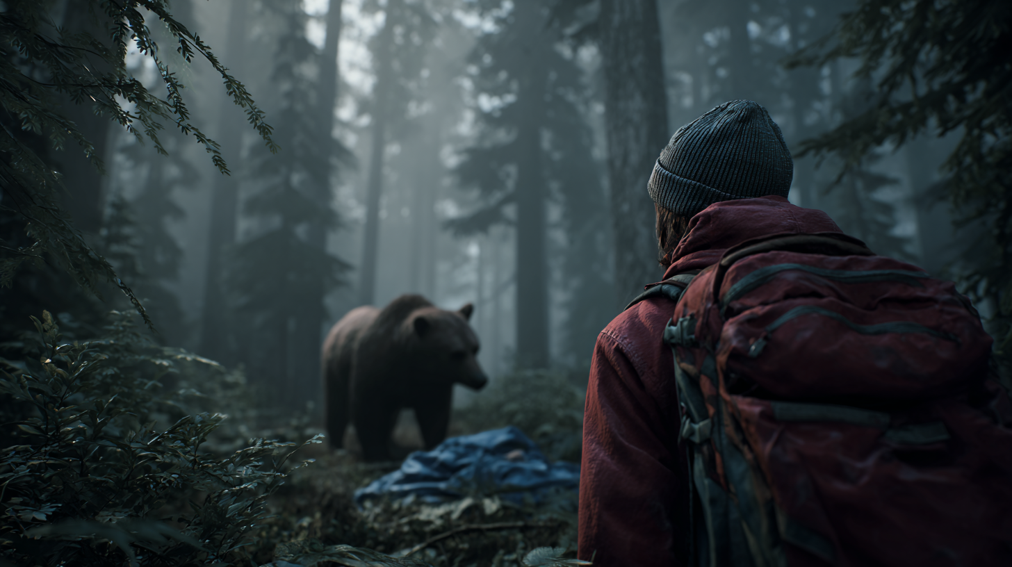 Ryan hesitated at the edge of the clearing, every muscle tight. The bear’s movements were deliberate, almost gentle. It lowered its massive head and placed the object it carried onto the ground. Then it stood still, breathing heavily in the cold air. From where Ryan stood, he could see the faint color of fabric. It wasn’t prey. It looked like an old jacket, blue and torn, wrapped around something small. The bear didn’t move closer or show aggression. It just stared at him, as if waiting.