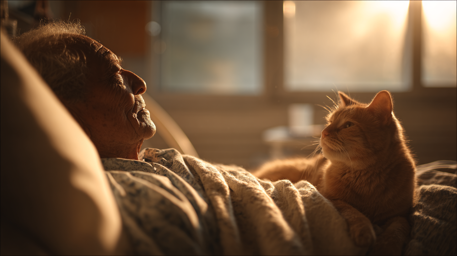 Three days later, Walter opened his eyes to soft light filtering through the curtains. The world was warm again. His throat felt dry, but his heart was steady. He turned his head slowly and froze. There, sitting on the blanket by his arm, was the little orange cat. Its eyes blinked slowly, its tail curled neatly around its paws. When it saw him move, it let out a soft meow as if to say, “You’re awake.” A nurse appeared in the doorway, smiling. “She hasn’t left since you got here,”