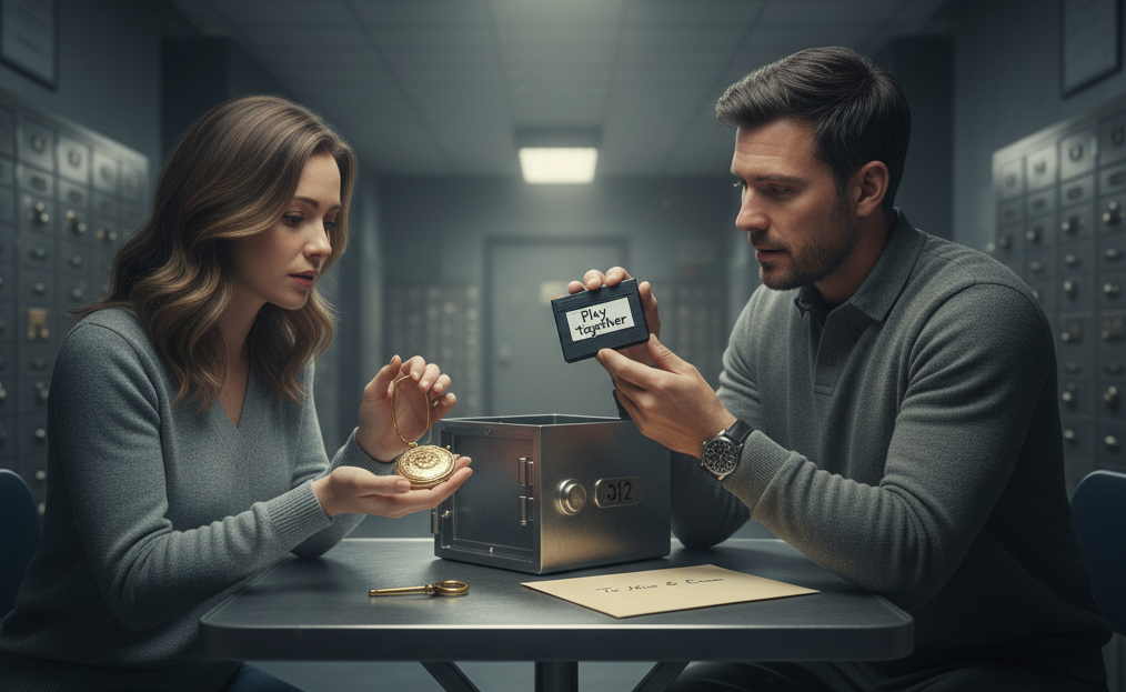 The next morning they sat in a quiet vault, box 312 unlocked between them. The tape said “Play together,” and the sealed letter carried both their names. The locket felt heavy for its size, warm from their palms.